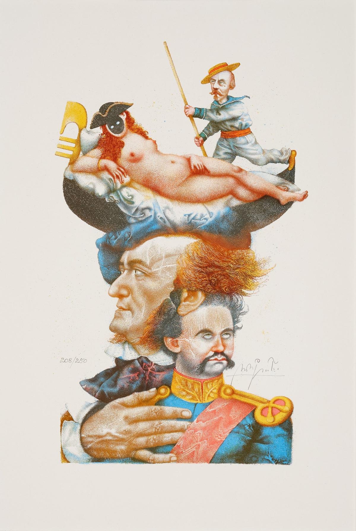 Michael Mathias Prechtl, Richard Wagner – Veni etiam, 1982, Offset-Lithographie auf Papier, 38 x 23 cm, Sammlung Kunstvilla, Foto © Kunstvilla. Foto: Annette Kradisch